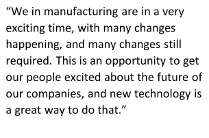 We in manufacturing are in a very exciting time, with many changes happening, and many changes still required. This is an opportunity to get our people excited about the future of our companies, and new technology is a great way to do that. Most of our people use modern information technology regularly in their daily lives – from their banking, to entertainment, and just even communicating with each other – but not on the plant floor. Bulletin boards, whiteboards (that change only slightly more often than bulletin boards), and paperwork instructions and checklists, are still the way many plants interact with their plant people. These plants are in need of an information remodeling no less than my favourite neighbourhood needed a décor change. And my guess is the impact of that change will be just as great.